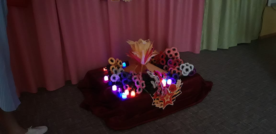 Дети посмотрели фильм о начале Великой Отечественной войны, а после минуты молчания, возложили цветы к вечному огню.