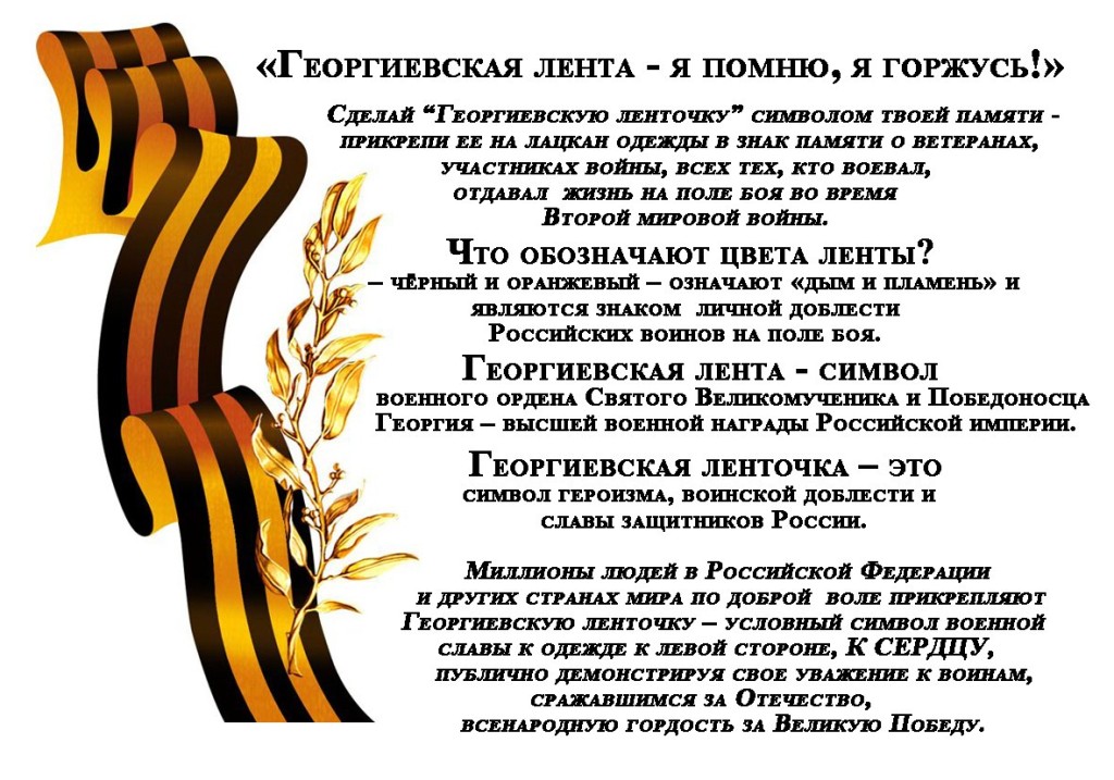 АКЦИЯ «Георгиевская ленточка»!Создано: 19.04.2021 19:16 | Печать В МДОУ «Детский сад №19 «Жар-птица» стартует акция «Георгиевская ленточка». Акция продлится с 19 апреля по 9 мая 2021г.